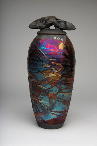 Shu-Chen is focusing her work on the sculpture elements of visual effect. Surface effects are layering of glazes, fired in the Raku kiln. Pursuing excellence through art is the goal.